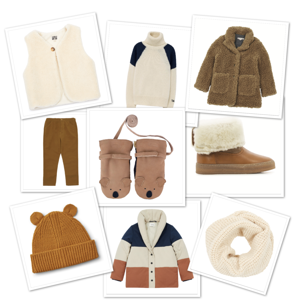 Gilet Bonton Pull The Animal Factory Manteau moumoute Bonpoint Pantalon en velours Jacadi Moufles fourrées Donsje Bottines fourrées Pom d’Api Bonnet Liewood Doudoune The New Society Cache Cou Oeuf en exclusivité chez Smallable